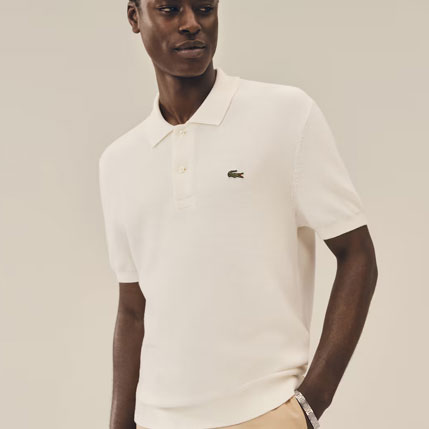 Polo LACOSTE uomo AH0618 Bianco cotone classic fit finitura a coste