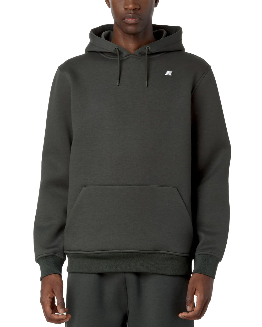 Felpa K-WAY uomo BERNIE SPACER K2141EW Verde cappuccio regolabile tasca frontale a marsupio vestibilità regolare capo in fleece