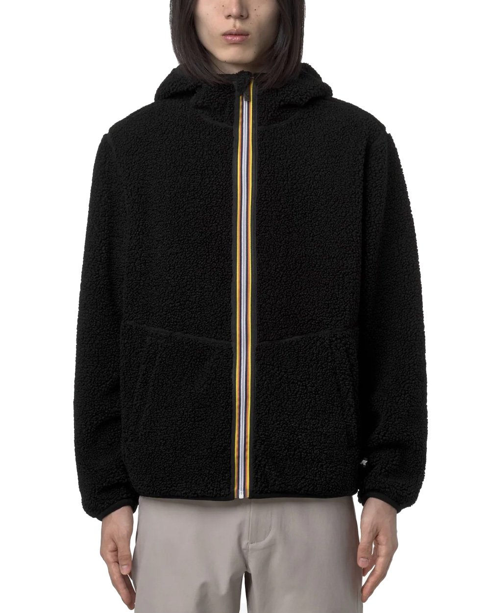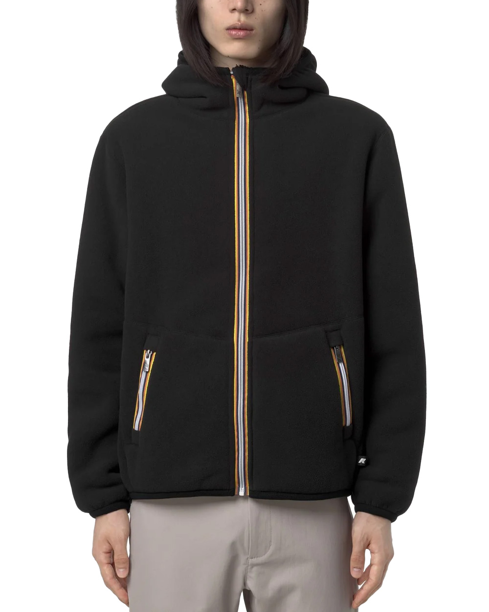 Felpa K-WAY uomo JACK SHERPA POLAR REVERSIBLE K3132NW Nera vestibilità regolare tasche interne e esterne cappuccio con nastro elastico giacca in pile reversibile