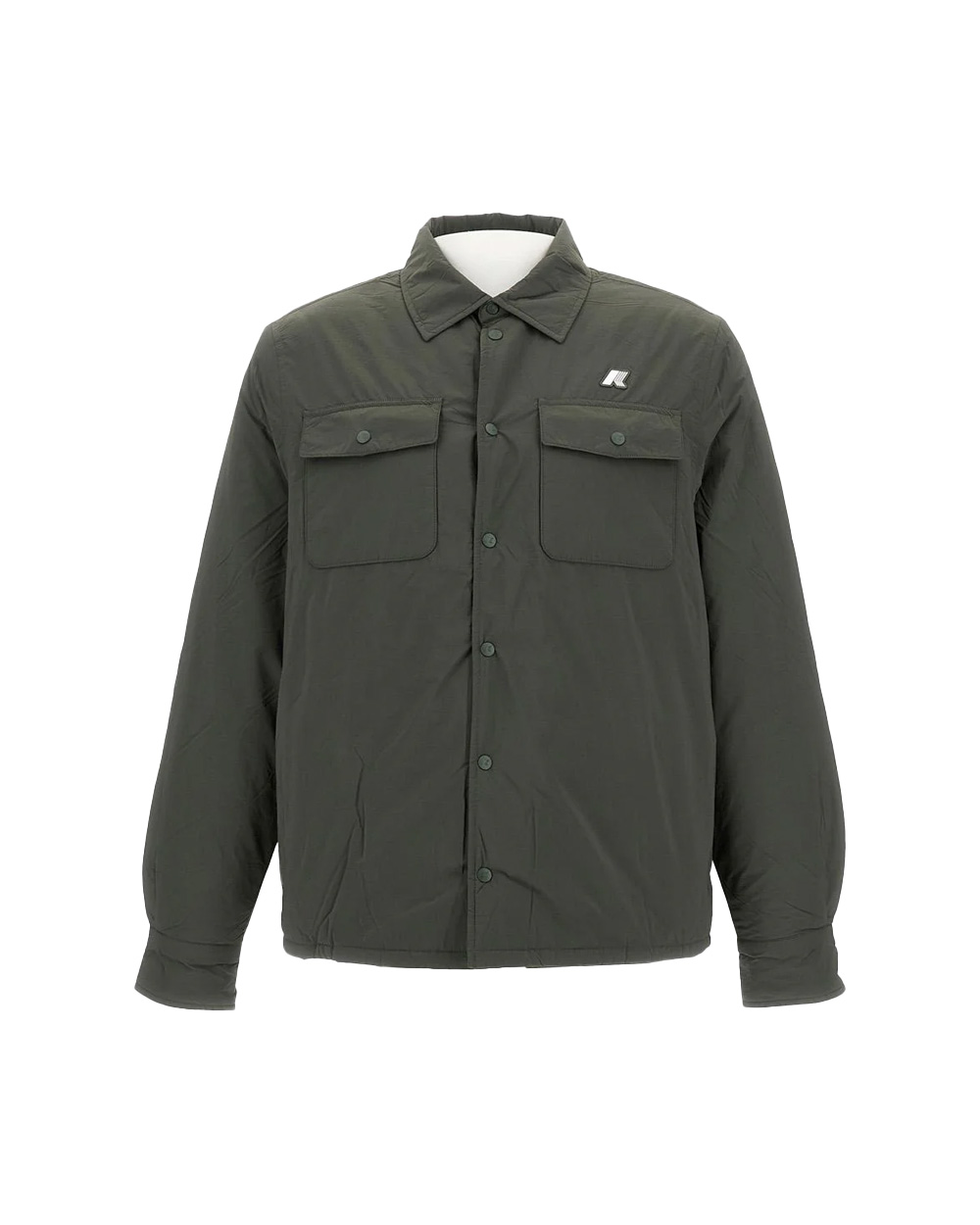 Giacca K-WAY uomo UMBERT PLAIN WARM JACKET K2136JW Verde in nylon con una miscela resistente chiusura frontale con bottoni colletto classico polsini regolabili comode tasche sul petto