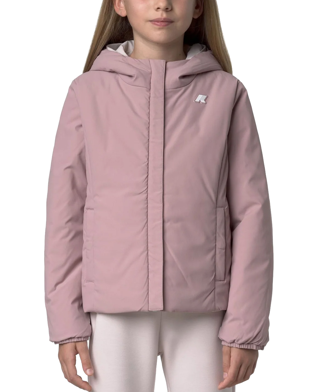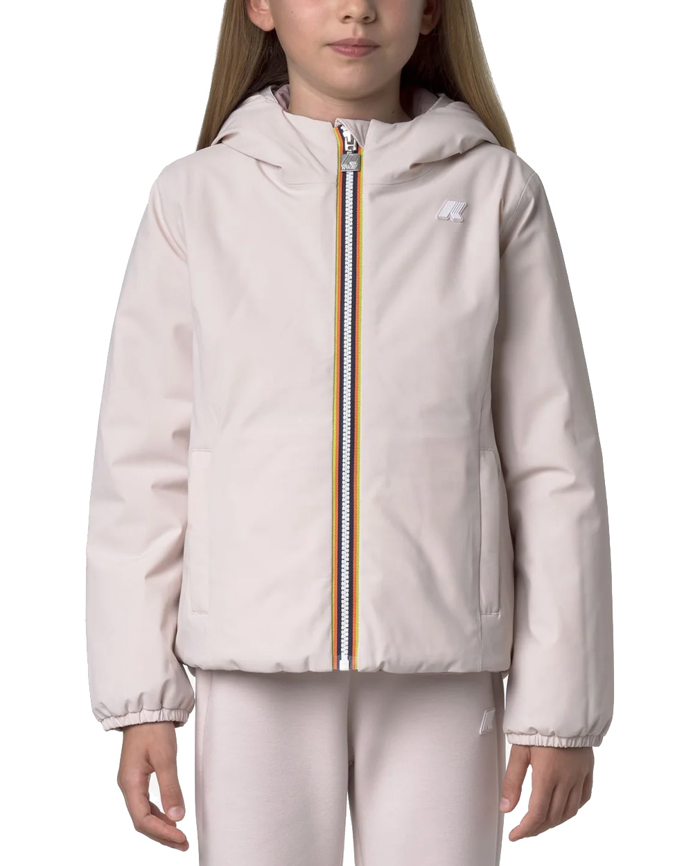 Giubbino K-WAY bambina P.LILY ST WARM REVERSIBLE K71339W Rosa/Cipria vestibilità regular fit cappuccio regolabile zip frontale polsi elastici tasche design reersibile