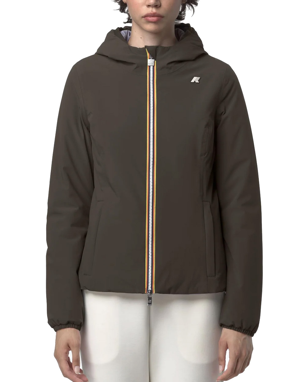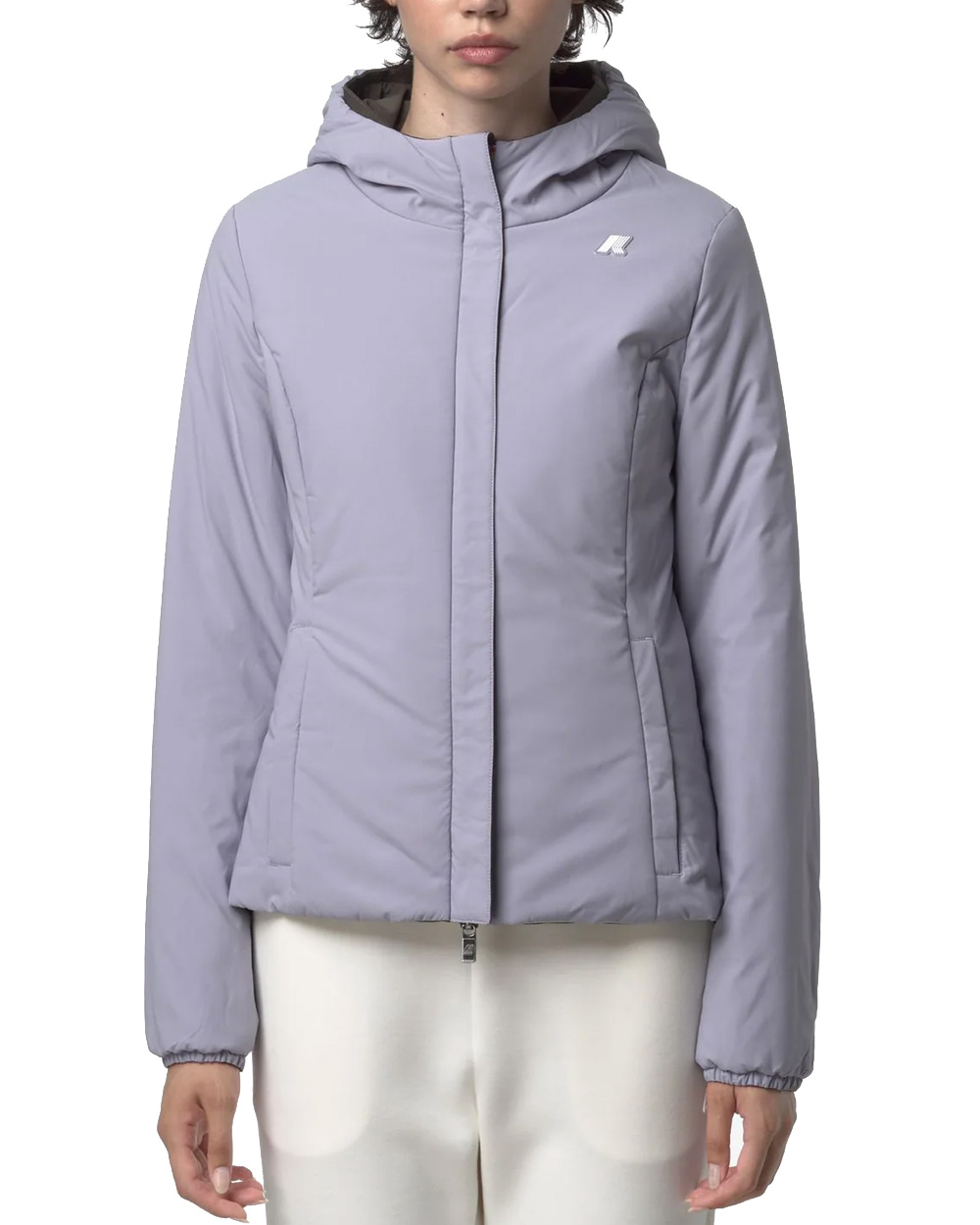 Giubbino K-WAY donna LILY ST WARM REVERSIBLE K6128TW Marrone/Lilla design reversibile un lato poliestere elasticizzato impermeabile traspirante un lato antivento imbottitura ovatta cuciture termonastrate