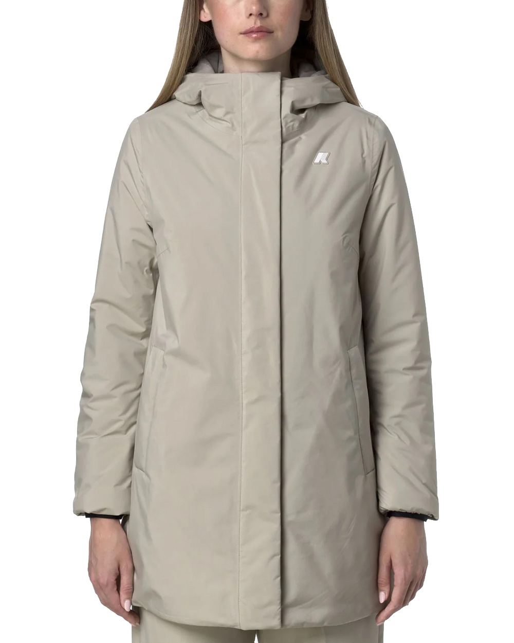Giubbino K-WAY donna SOPHIE SOFT TOUCH MARMOTTA K71326W Beige design slim resistenza acqua cappuccio regolabile vestibilità slim
