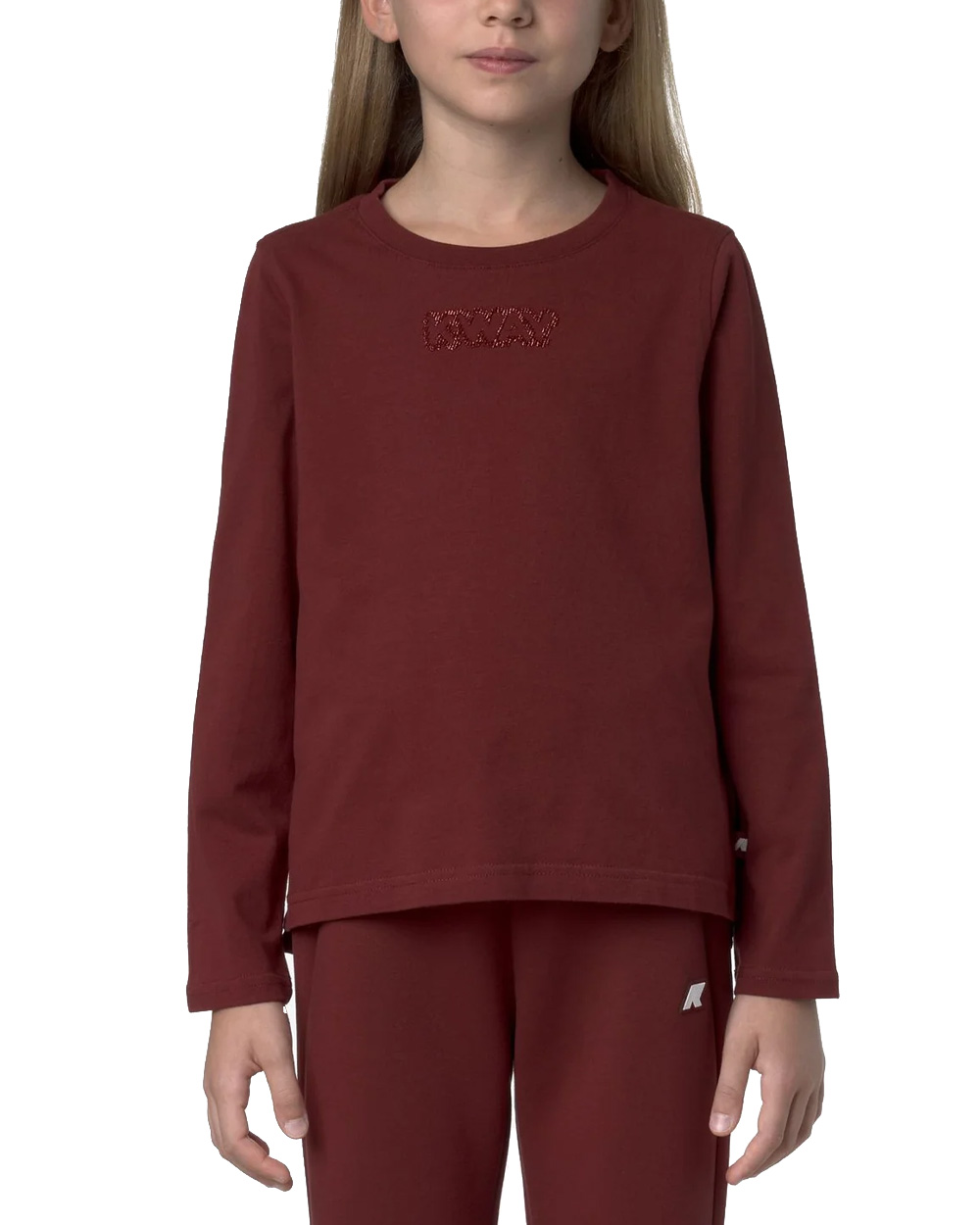 Maglia K-WAY P. ELMERINE SHINY LETTERING PEACH bambina K5122TW bordeaux cotone peach-touch lettering ricamato con filo metallico