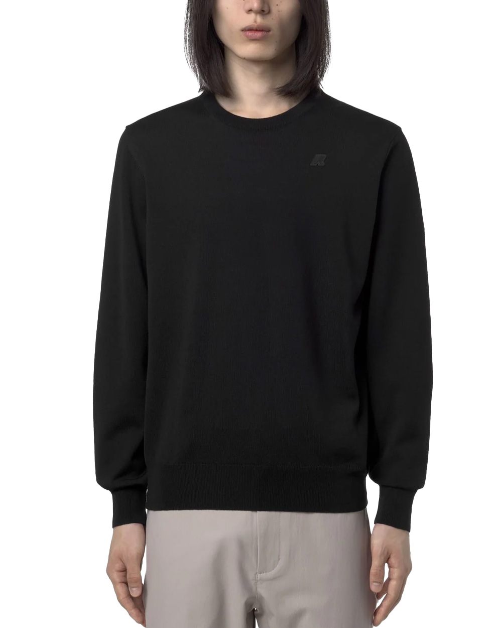 Maglione K-WAY uomo SEBASTIEN MERINO K2142EW Nero girocollo lana merino easy-care vestibilità regolare