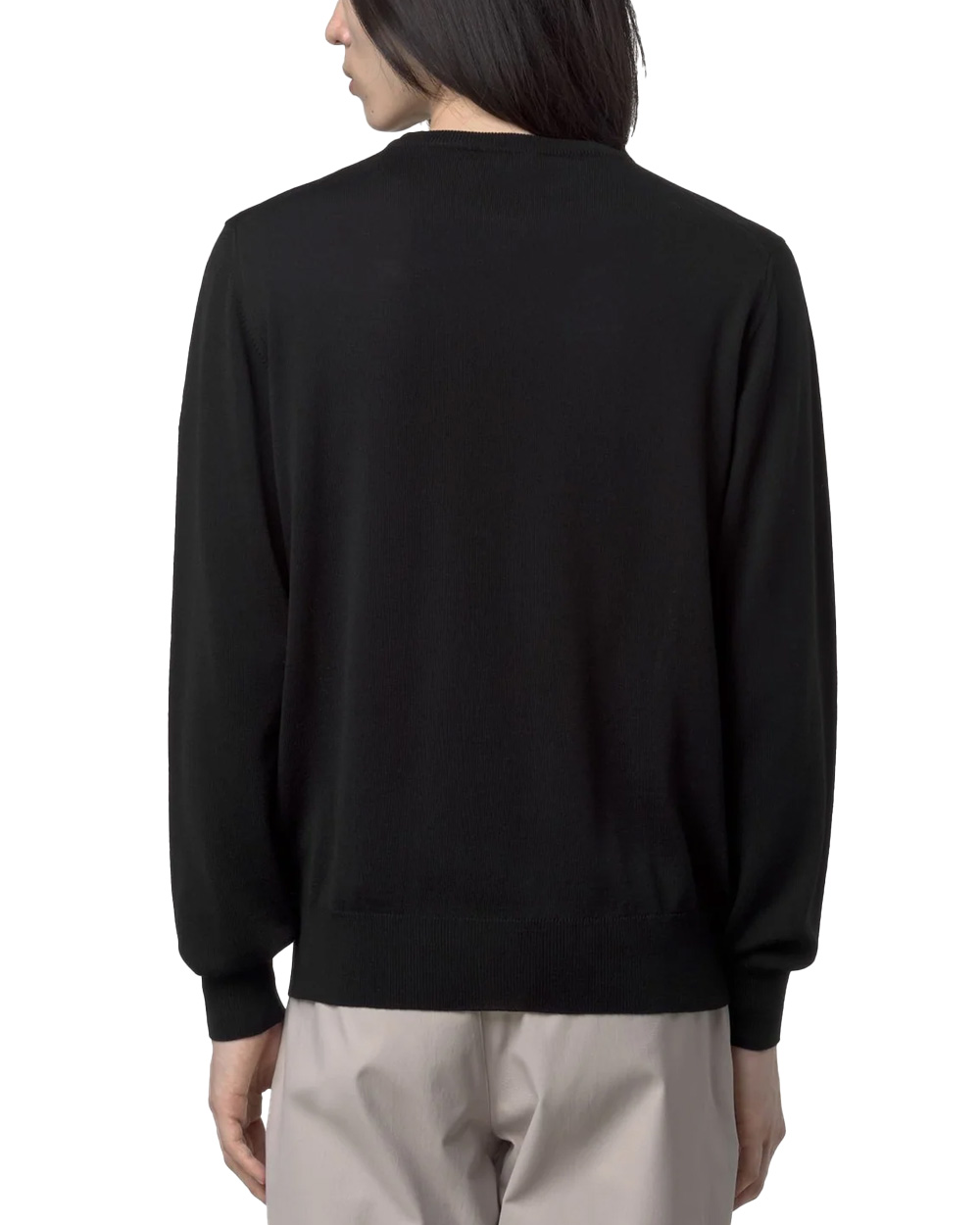 Design: girocollo classico con bordo a costine su collo, polsini e fondo