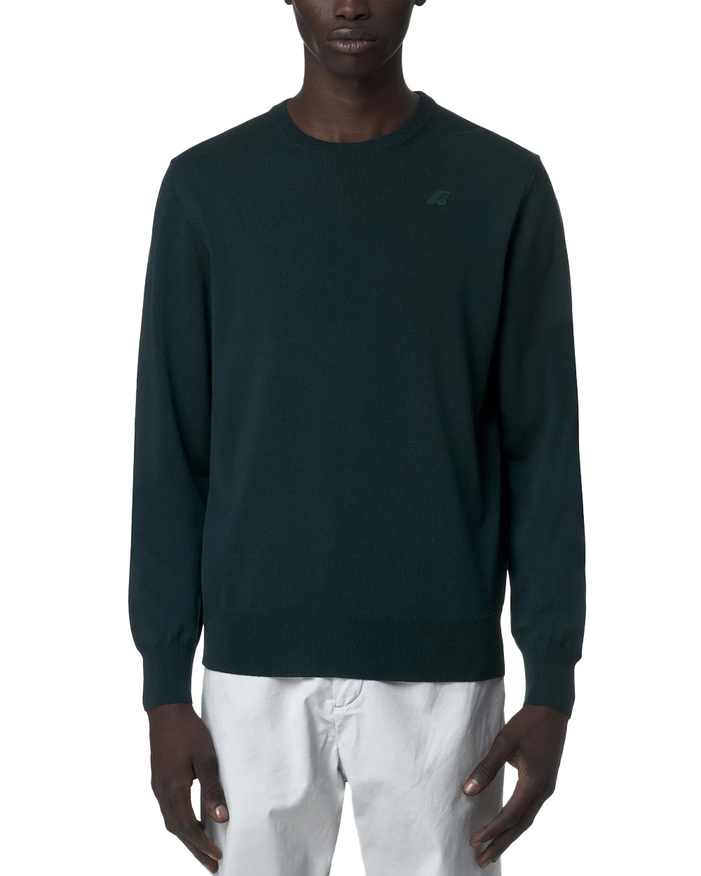 Maglione K-WAY uomo SEBASTIEN MERINO K2142EW Verde scuro girocollo lana merino easy-care vestibilità regolare