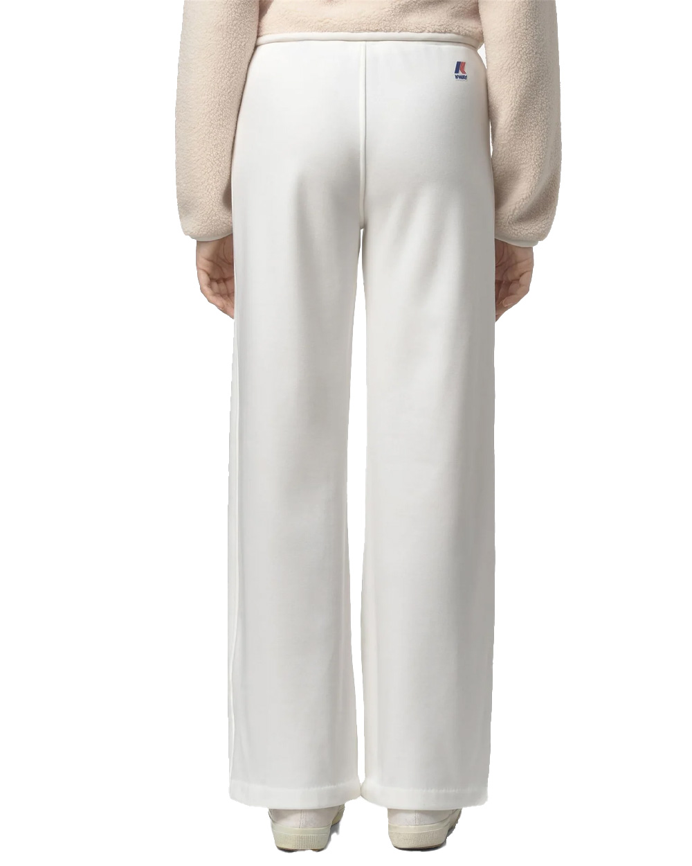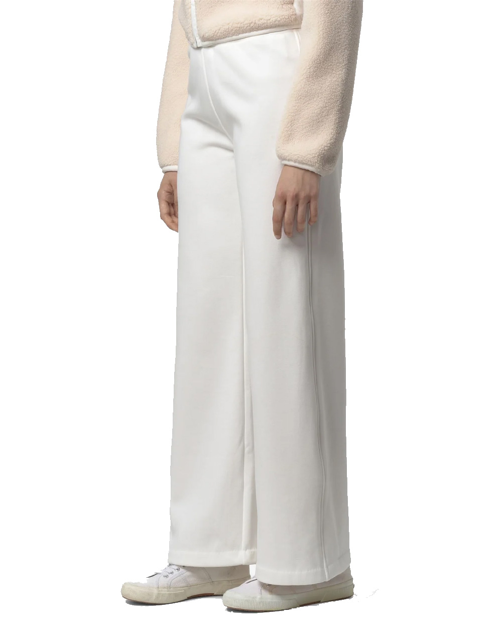 Pantalone K-WAY LOYRE BRUSHED PC donna K51338W Bianco misto cotone poliestere taglio ampio gamba palazzo vita elesticizzata