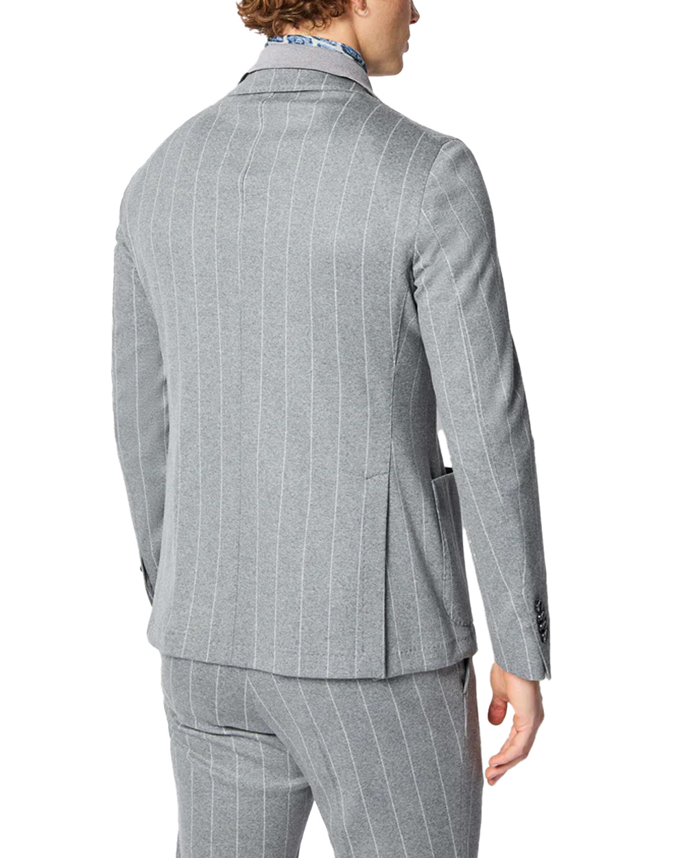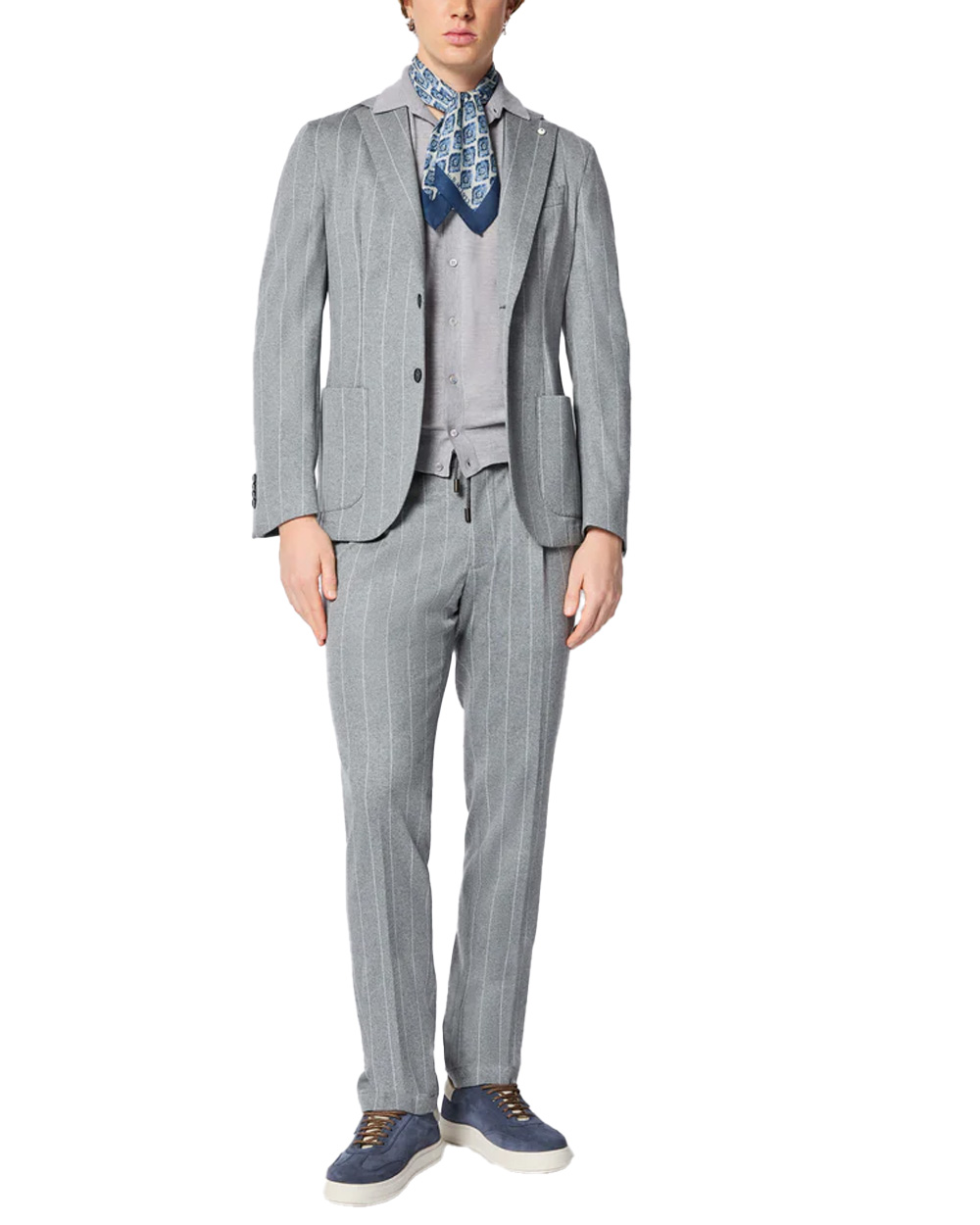 LAbito Jack in jersey grigio chiaro di L.B.M. 1911 fonde lo stile sartoriale con la comodità del tessuto jersey, per un completo elegante ma morbido, perfetto per chi desidera un look raffinato senza rinunciare al comfort. La fantasia gessata nei toni del grigio chiaro melange con bianco avorio offre uneleganza discreta e moderna. La giacca è sfoderata, il pantalone ha una pince e coulisse in vita, unendo estetica e praticità per un outfit versatile.