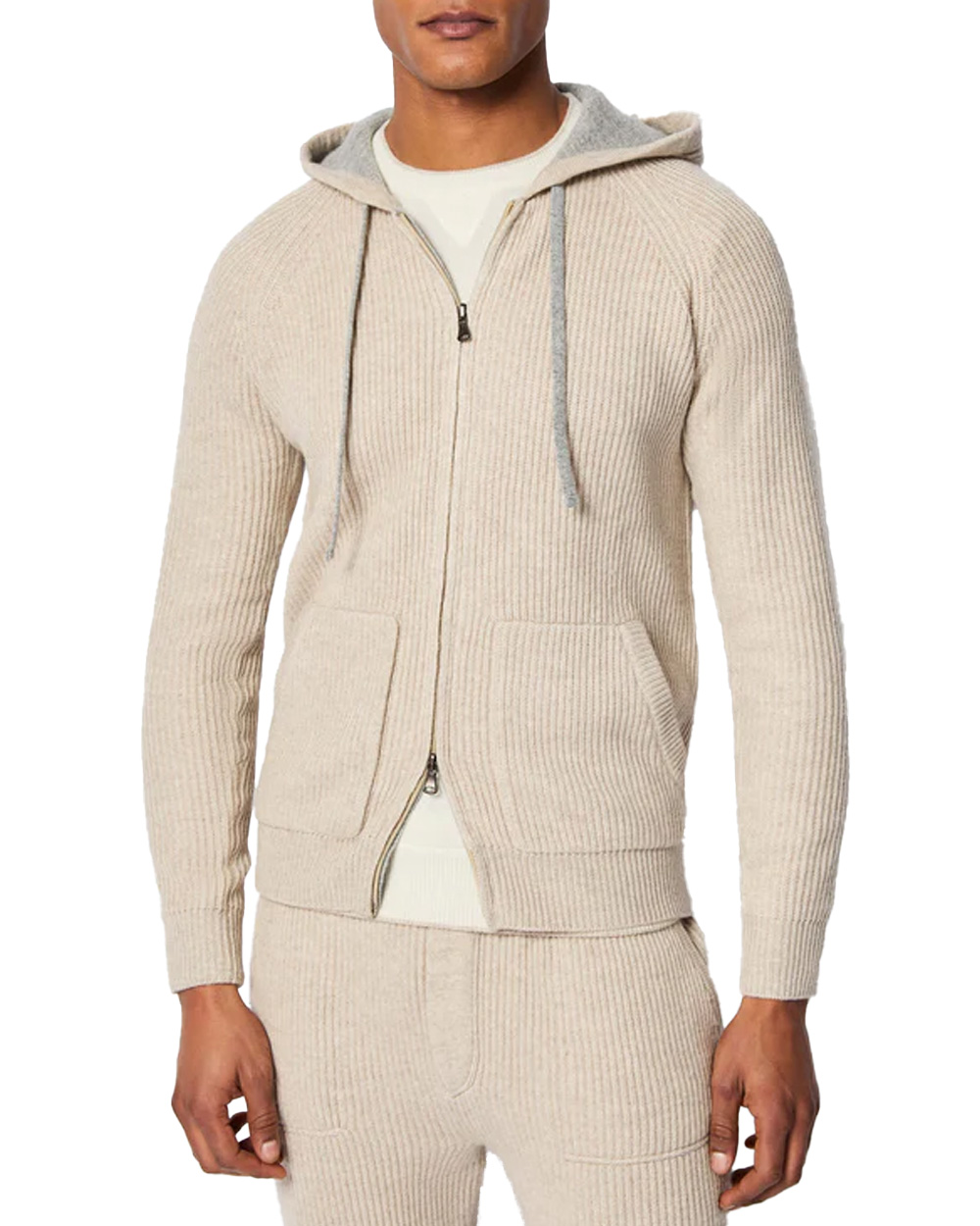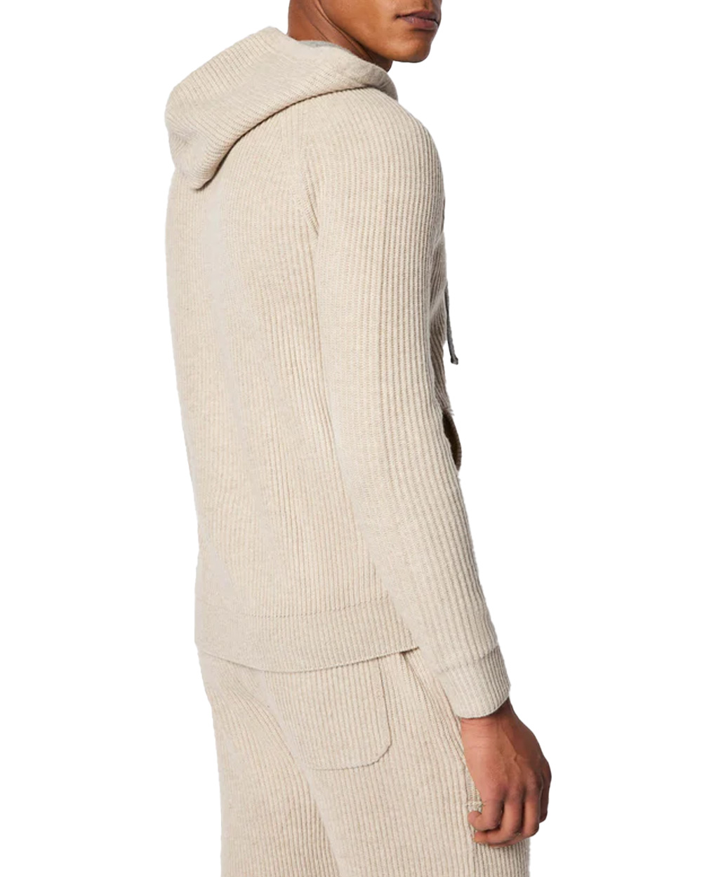 Felpa L.B.M 1911 uomo 638059505 Beige mix di lana vergine e cashmere zip a doppio cursore cappuccio con coulisse finitura a coste