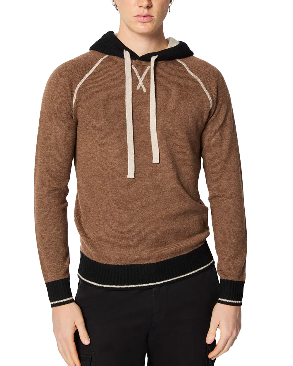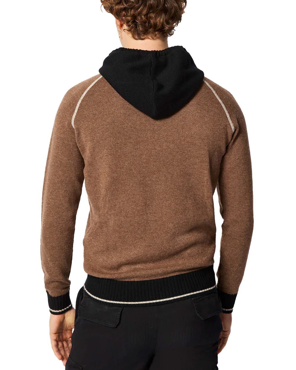 Felpa L.B.M 1911 uomo 638259507 Marrone cappuccio in maglia dettagli in contrasto nei toni del nero blend di 70% lana vergine e 30% cashmere