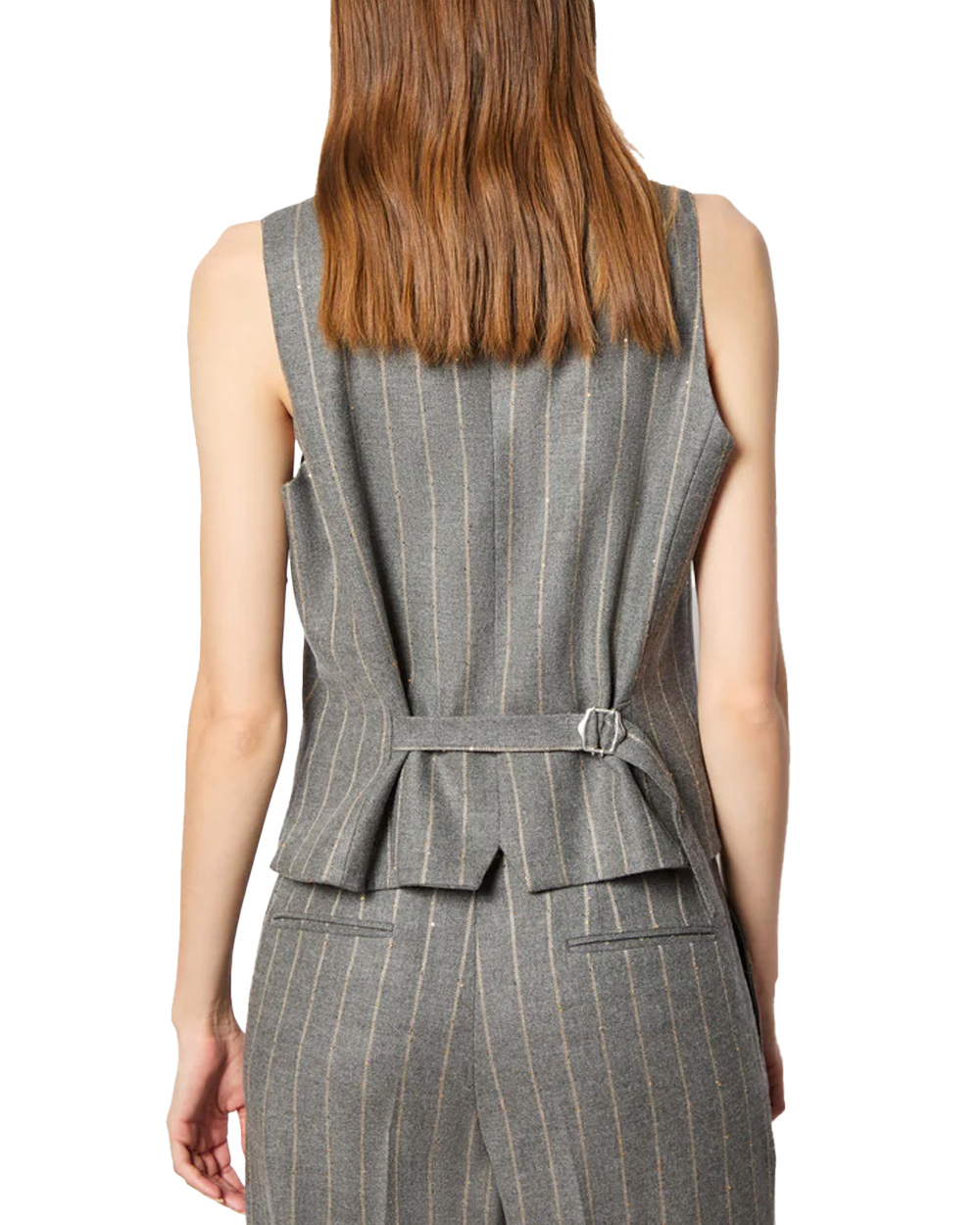Gilet L.B.M 1911 donna 115153543 Grigio fantasia gessata sottili righe in beige lurex cinturino