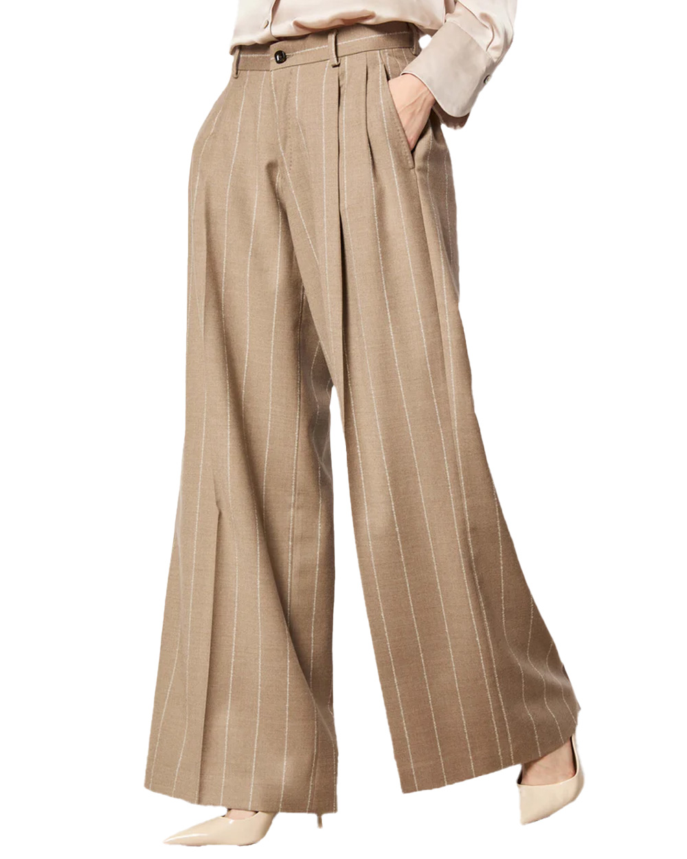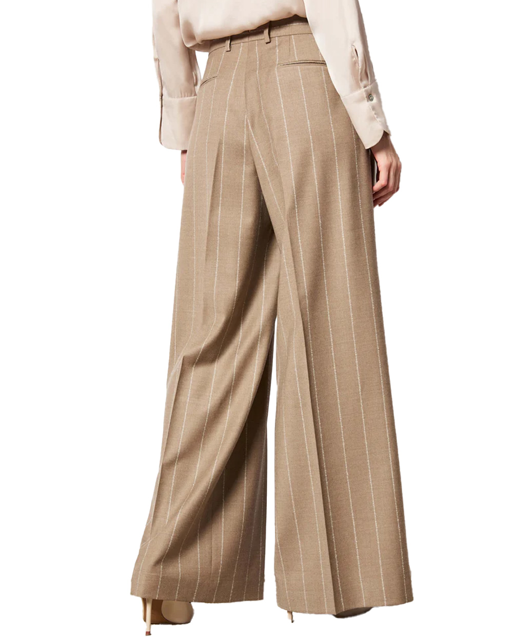 Pantalone L.B.M 1911 donna 811053539 Cammello ampio gessato in lana vergine leggermente stretch vestibilità over gamba ampia e piega stirata