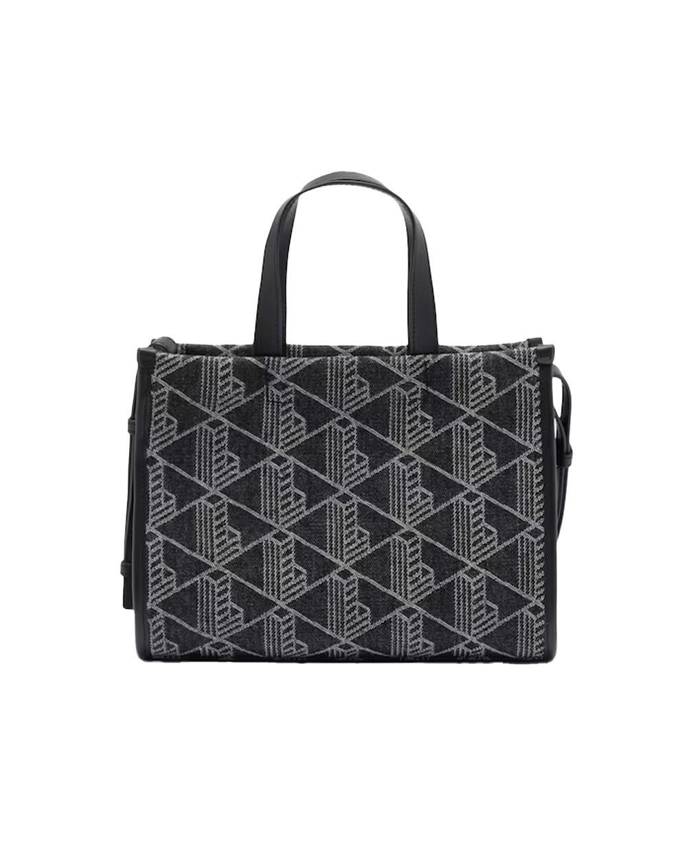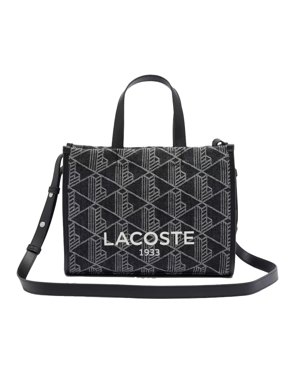 Borsa Lacoste donna NF5177HK Nero shopping bag piccola monogramma denim resistente con bordo liscio cinghia regolabile tasca interna