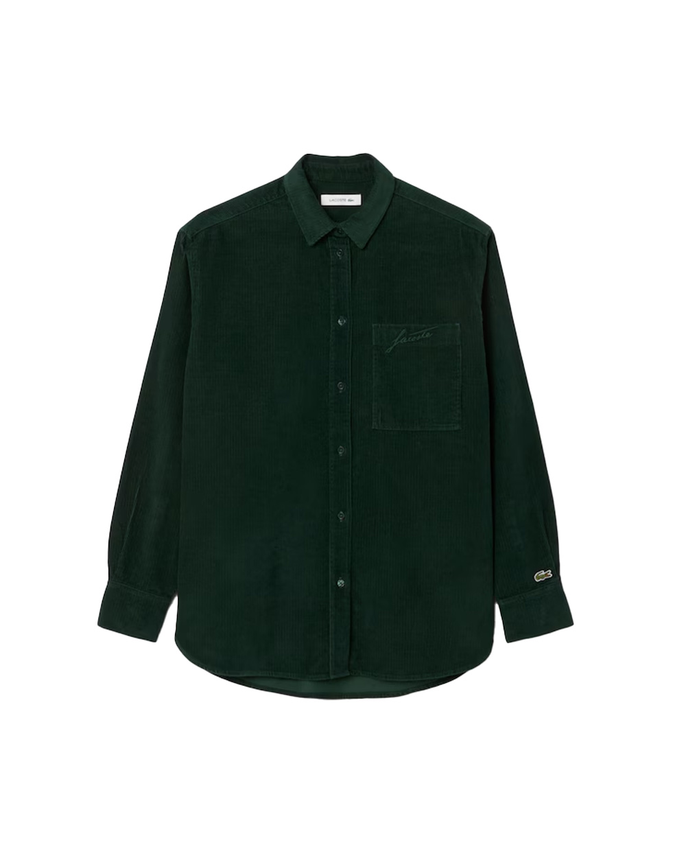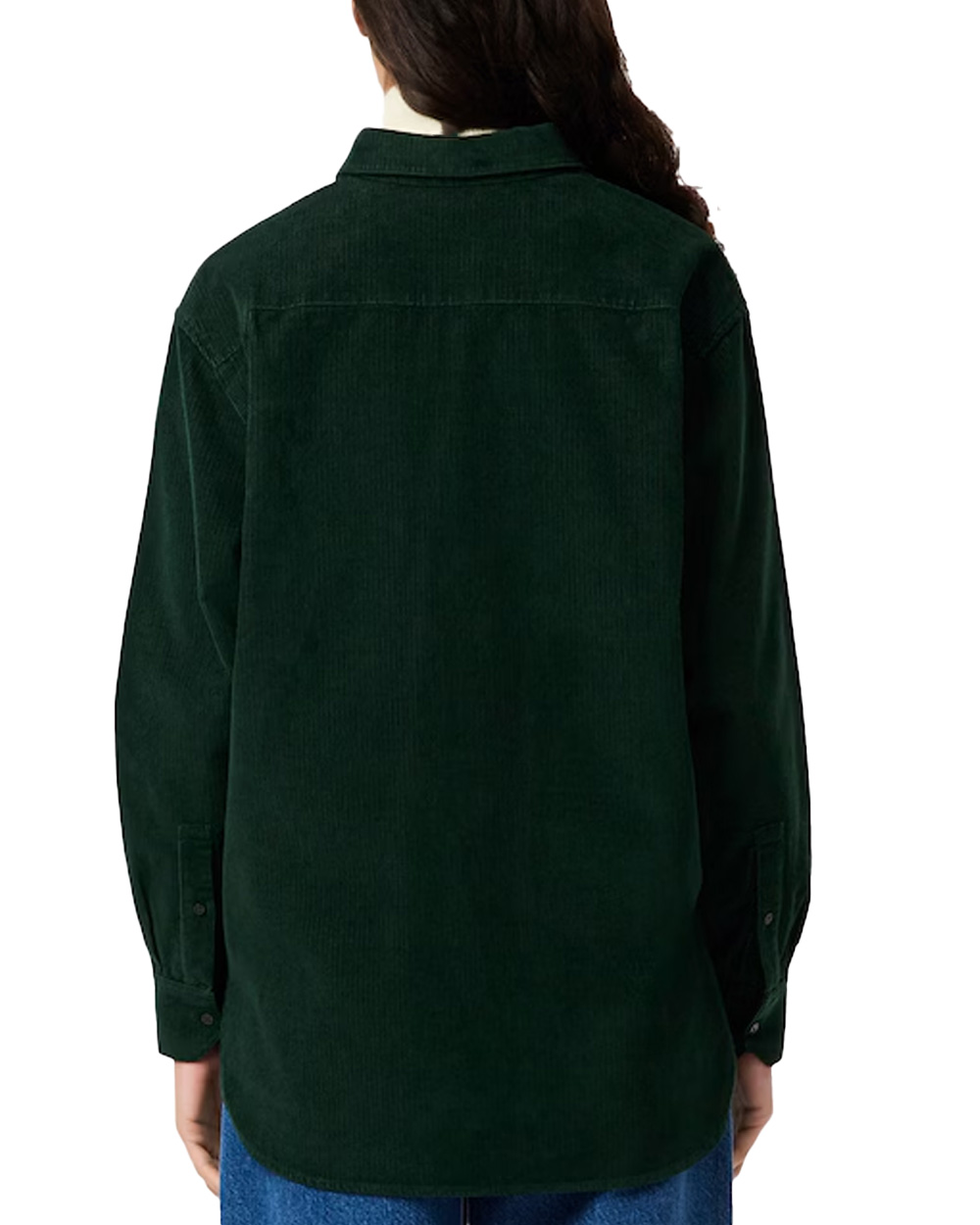 Camicia Lacoste donna CF5336 Verde overshirt in velluto a coste spalle scese cotone