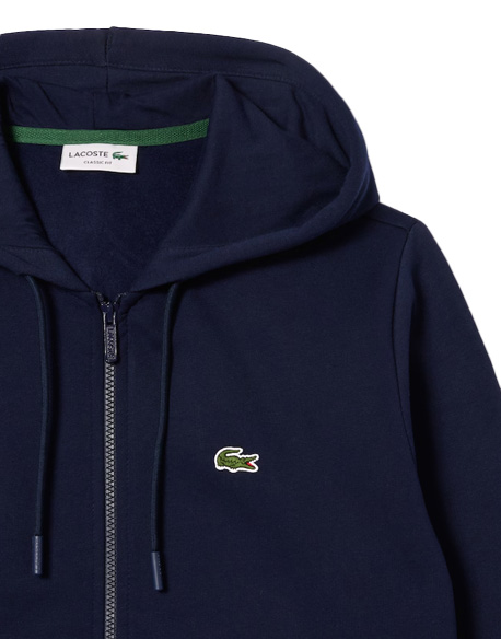 Felpa Lacoste uomo SH9626 Blu cappuccio zip tasca a marsupio