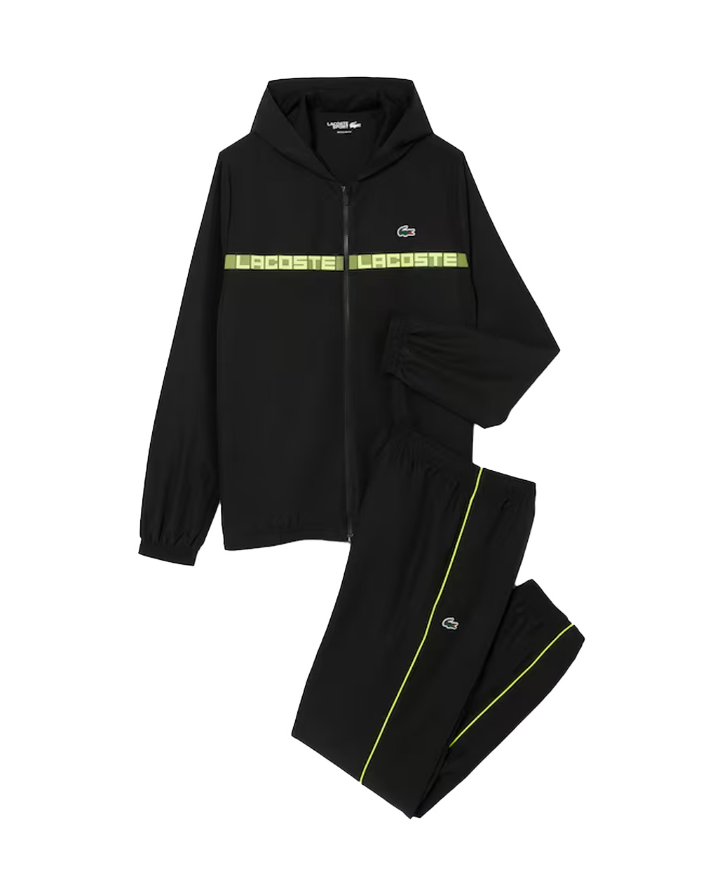 Tuta Lacoste uomo WH4757 Nero riga centrale con logo e bordi a contrasto