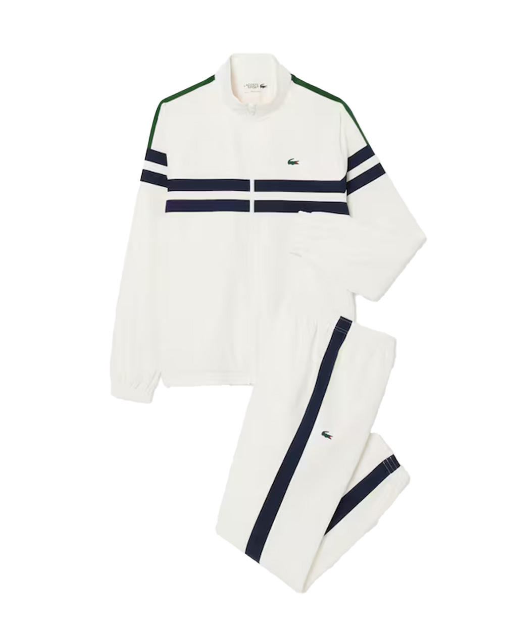 Tuta Lacoste uomo WH4766 Bianca design color block taffetà a rombi leggero stampa del coccodrillo sul retro