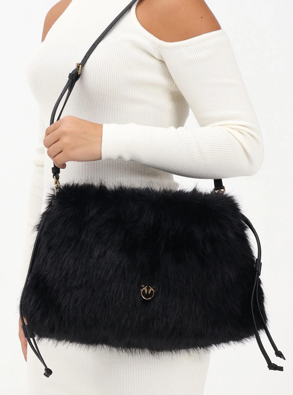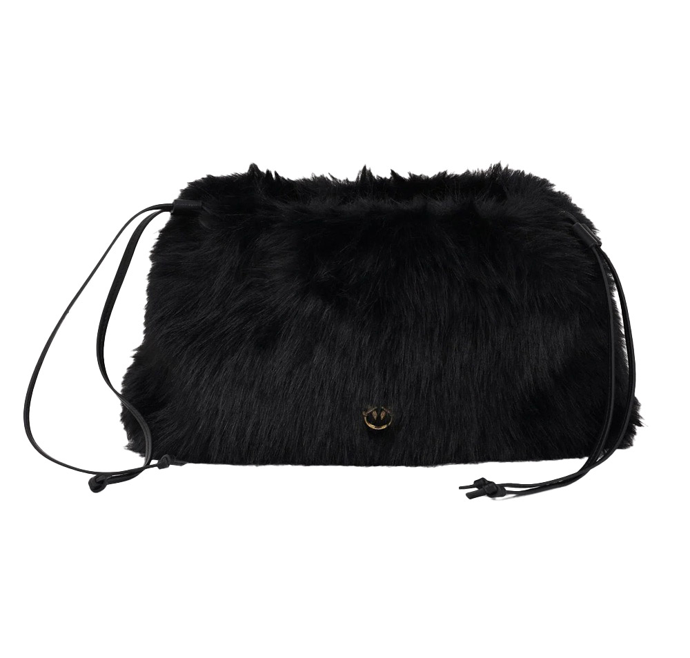 Maxi Clutch PINKO in eco-pelliccia nera da donna.