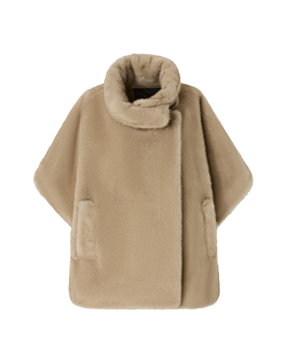 La Cappa effetto pelliccia è un capo sofisticato e avvolgente, perfetto per impreziosire i tuoi look nelle stagioni di mezzo. Realizzata in un tessuto Aspen dal tatto morbido con finitura effetto pelliccia, questa cappa corta dal taglio moderno unisce charme e versatilità. Il colletto ripiegato, la chiusura frontale decentrata e le tasche a filetto completano il design, rendendola ideale per essere indossata sopra abiti da sera come su capi casual chic. Foderata, con maniche corte, garantisce praticità e stile anche nelle giornate più fresche senza rinunciare a un tocco glamour.