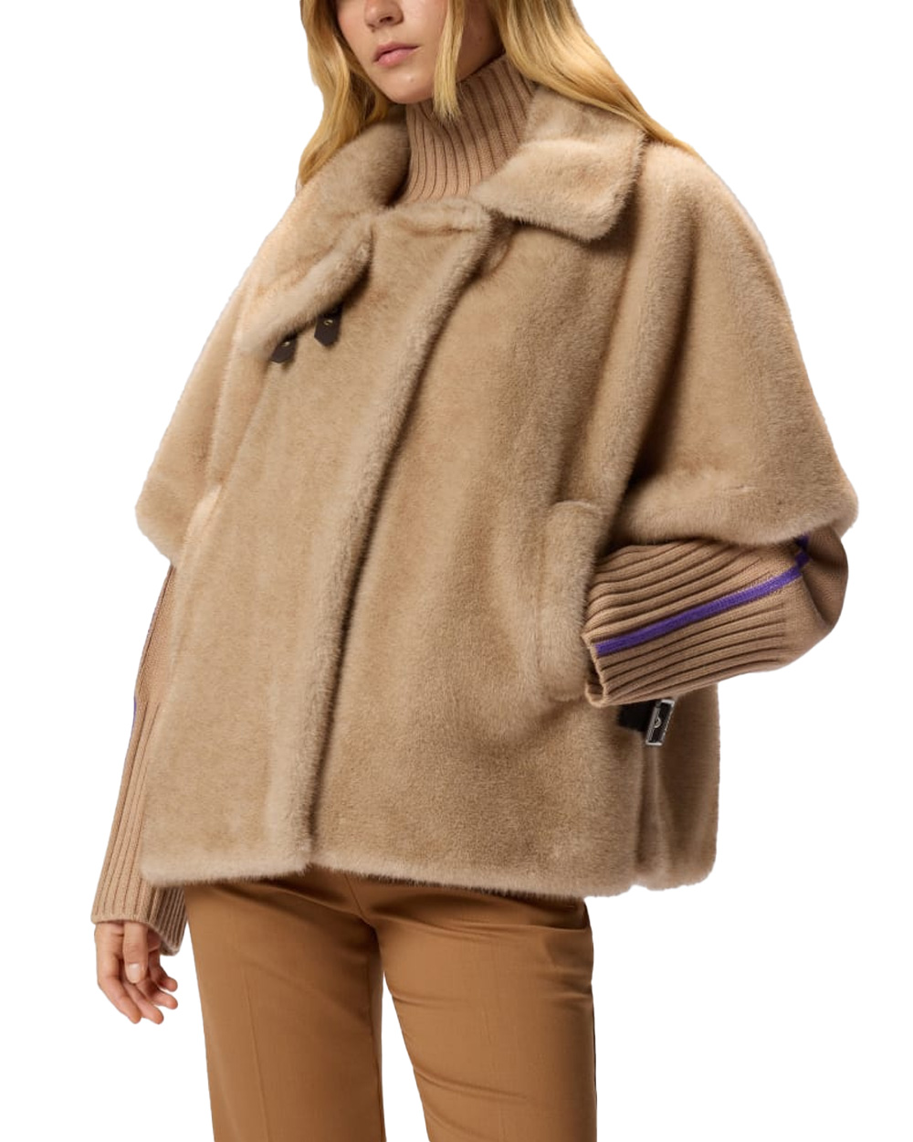 Cappa Pinko donna 103837A2P Beige foderata maniche corte colletto ripiegato effetto pelliccia