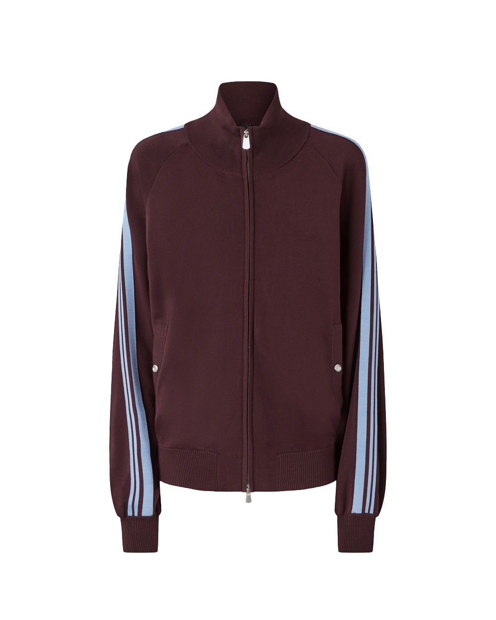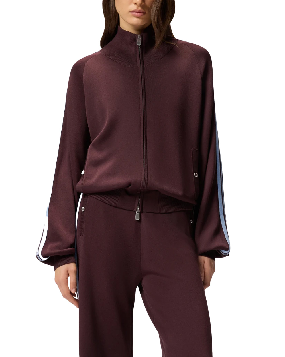 Felpa Pinko donna 105391A2FQ Bordeaux zip maxi logo collo alto bande laterali a contrasto