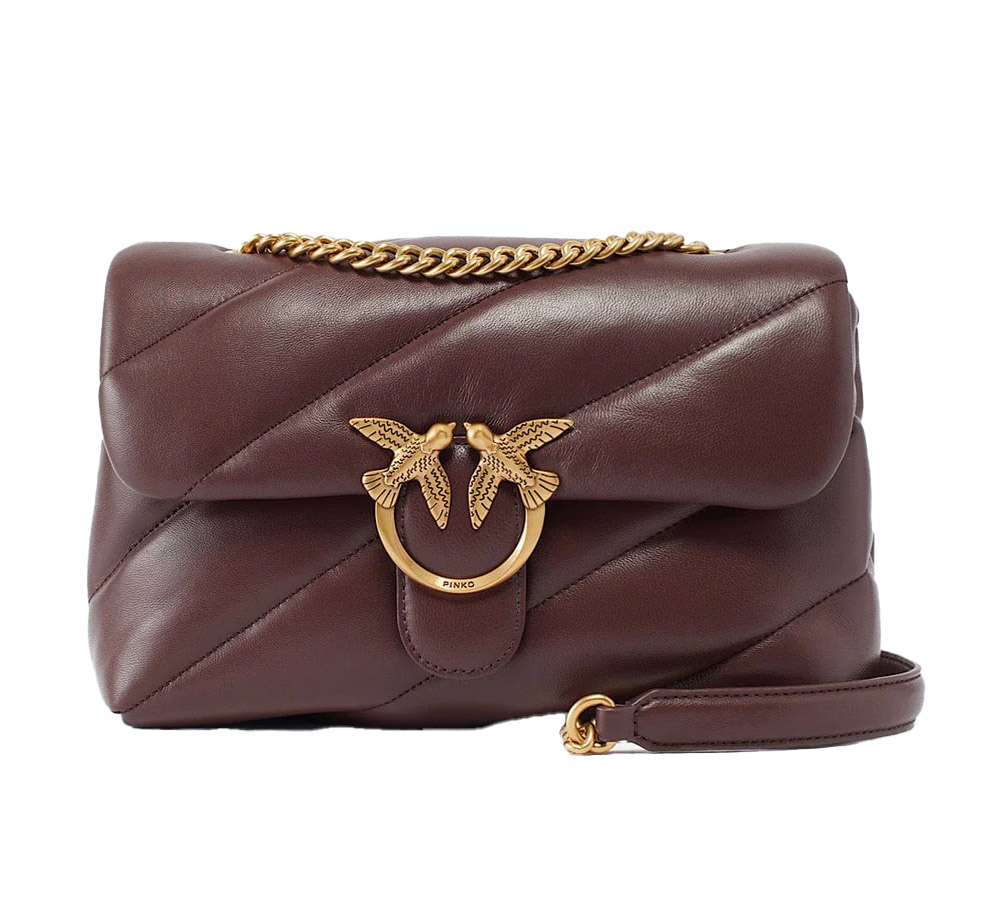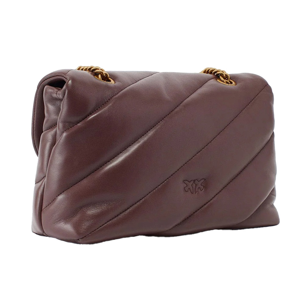 lassic Love Bag Puff in morbida nappa con maxi trapuntatura obliqua. La chiusura è completata dall'iconica fibbia in metallo Love Birds Diamond Cut. L'interno è foderato in microfibra scamosciata e comprende tramezza chiusa con zip e tasca a parete. La tracolla combina la classica catena metallica rotonda al pratico spallaccio in nappa.