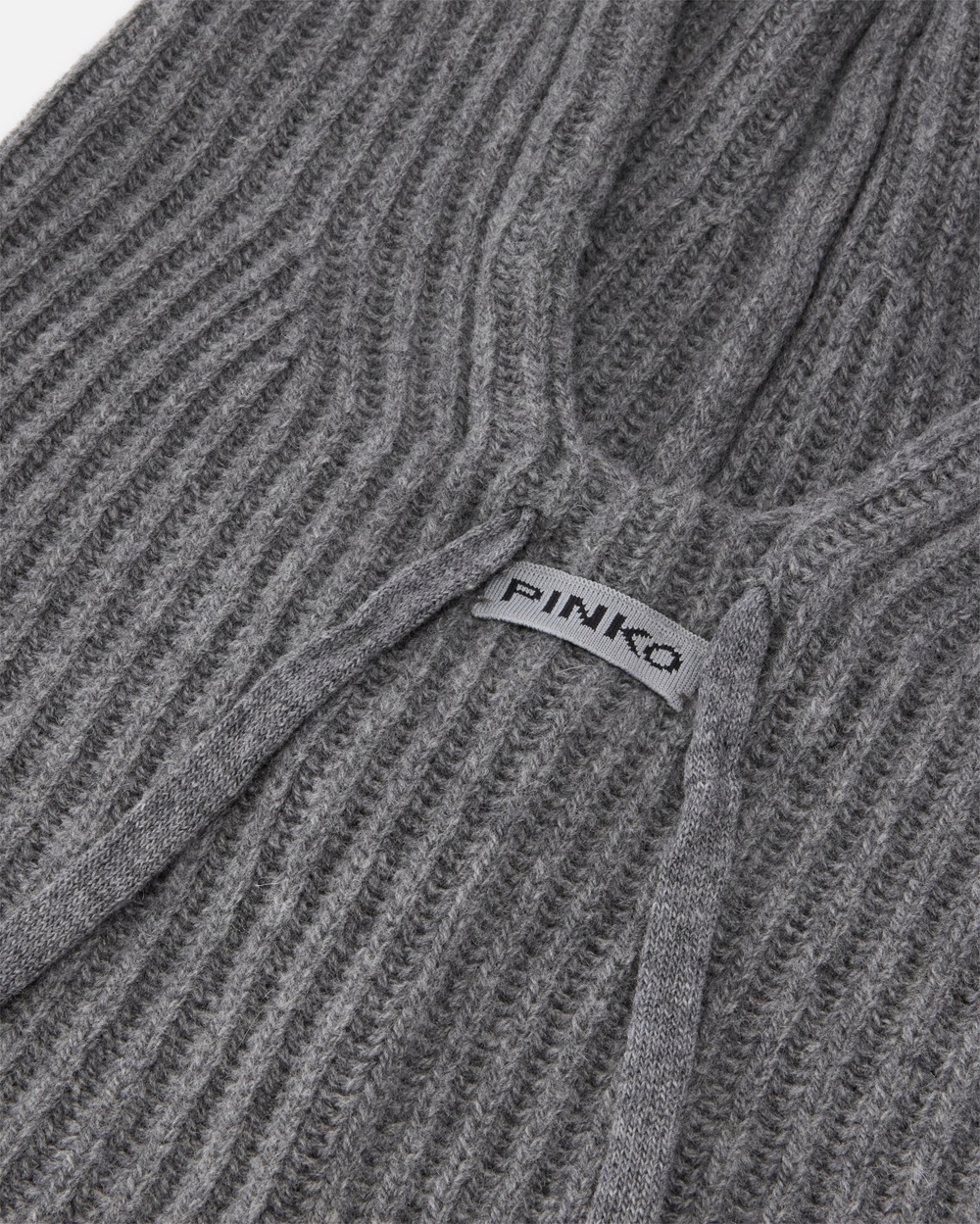 Berretto invernale dalla linea a balaclava realizzato in morbida maglia di misto lana e cashmere lavorata a coste, dal volume morbido e personalizzato con etichetta logo lettering PINKO davanti. La linea morbida di questo copricapo è completata dalla coulisse nello stesso tono per regolarne la vestibilità.