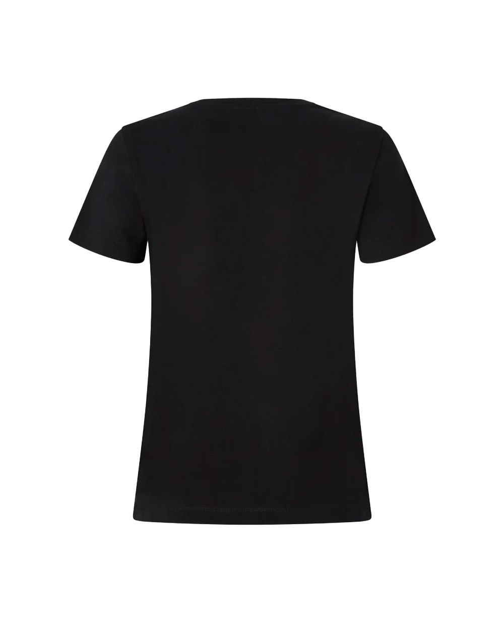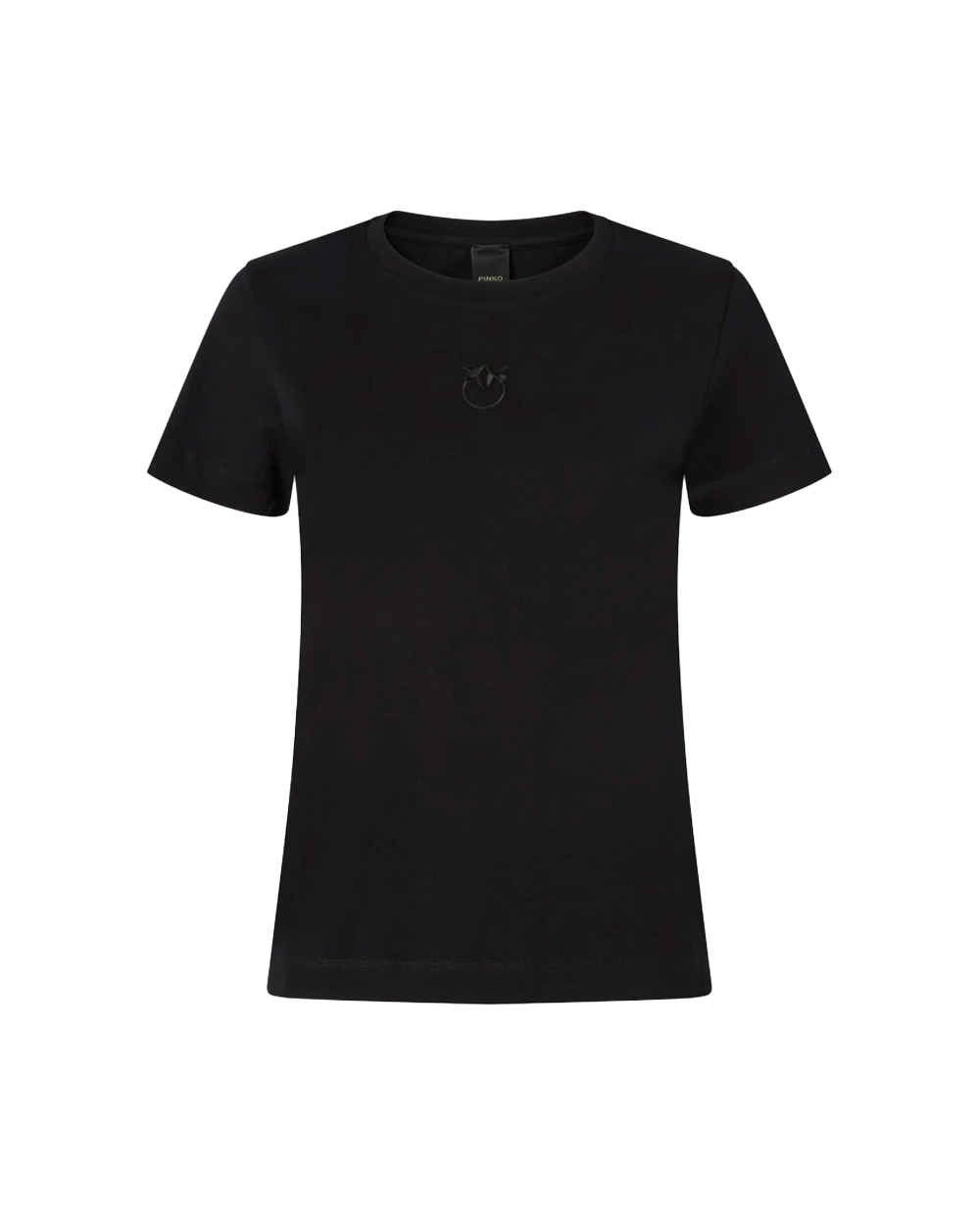T-shirt Pinko donna 100355A2RD Nero jersey di cotone taglio slim fit ricamo frontale con logo Love Birds